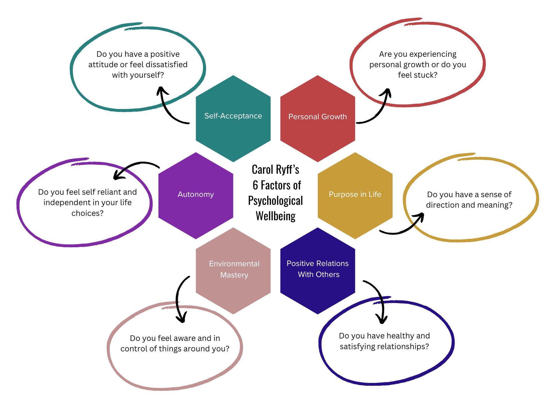 One of the most scientifically validated models of Psychological Well-Being is that developed by Professor Carol Ryff at the University of Wisconsin-Madison. This explores six key dimensions of wellness: self-acceptance, positive relationships, autonomy, environmental mastery, purpose in life, and personal growth.